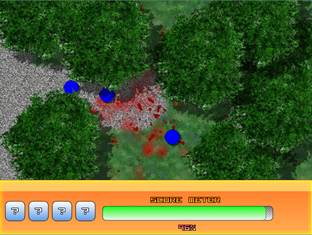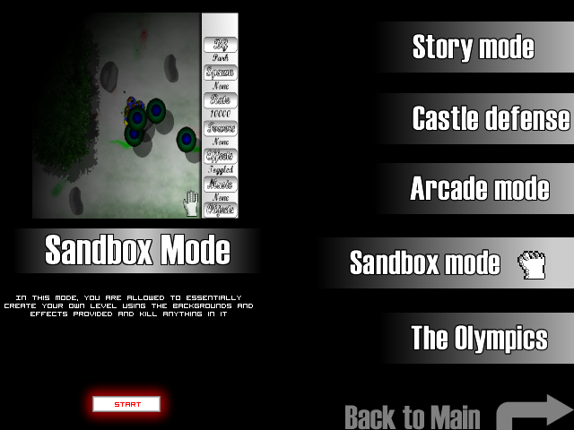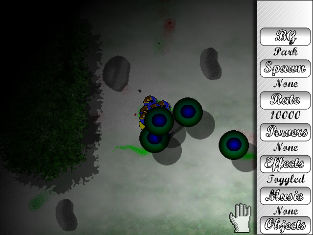 Instructions: Click on enemies to squash them, or smash them by dragging your closed fist over them quickly. With each kill, you get points that add onto your score meter, which depletes itself slowly. Once the score meter is full, you can advance to the next level. Since this is the demo, you can press left and right to skip through levels.