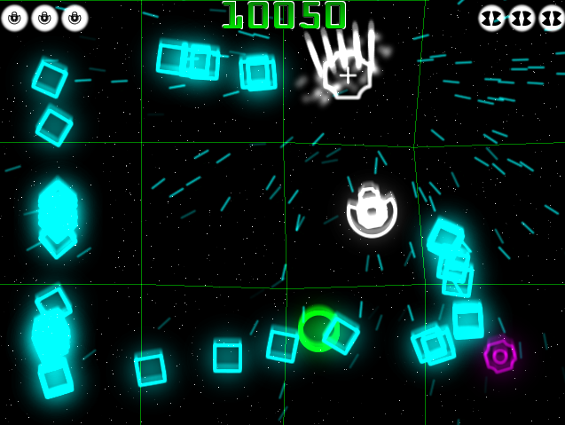 Description - This is a high graphic arcade TDS with many unlockables and challenges. Just like a regular arcade game, this gets more difficult as time progresses. There are also tons of formations, score multipliers, and an engine I created called the Gridripple engine, along with the Gridshader engine (Basically what makes the background grid do its cool ripply thing).