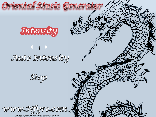 Description: This is a quick program I wrote to generate some oriental style music (played on the koto). There are 5 different styles/rhythms to choose from (shown under intensity), and a couple of other small customizations.